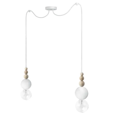 Lampa wisząca LOFT BALA 2 LBBIS2B09 Kolorowe Kable Biały strukturalny Drewno Kulki Pająk
