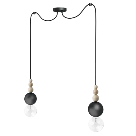 Lampa wisząca LOFT BALA 2 LBCZS2B04 Kolorowe Kable Czarny strukturalny Drewno Kulki Pająk
