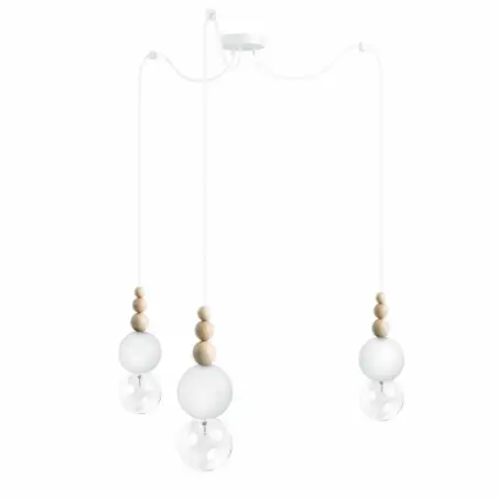 Lampa wisząca LOFT BALA 3 LBBIS3B09 Kolorowe Kable Biały strukturalny Drewno Kulki Pająk