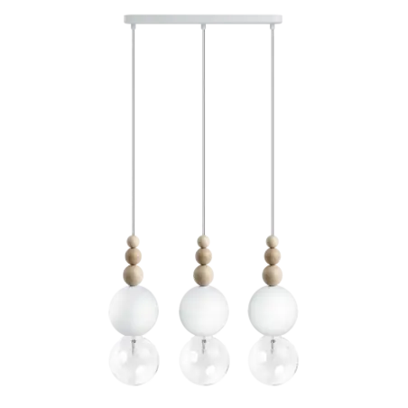 Lampa wisząca LOFT BALA 3L LBBIS3LB09 Kolorowe Kable Biały strukturalny Drewno Kulki