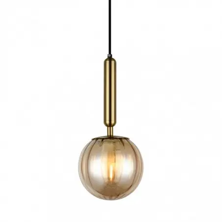 Lampa wisząca Ravena PND-2324-1 BRO+AMB Italux mosiężny, bursztynowy stal, szkło